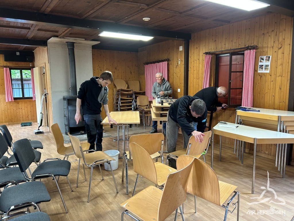 Wie jedes Jahr gab es wieder diverse Arbeiten an der Vereinshütte zu erledigen. Zusammen mit dem TV Herblingen waren viele Helfer der Männerriege im Einsatz und dank der grossen Anzahl konnten wir bereits um 12 Uhr zu einem z'Mittag hinsetzen. Herzlichen Dank an Alex, Bernhard, Bruno C, Christian, Daniel, Edy, den beiden Hansjörg, Heinz H, Jörg, Lukas, Marco, Markus, René, Ruedi S, Thomas, Urban und Walter.