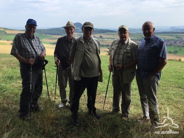 Nach einem Blick auf die Wanderkarte ging es gemütlich los, mit herrlichem Ausblick auf den Hegau mit seinen Vulkanen, Feldern, Wiesen und kleinen Wäldern.