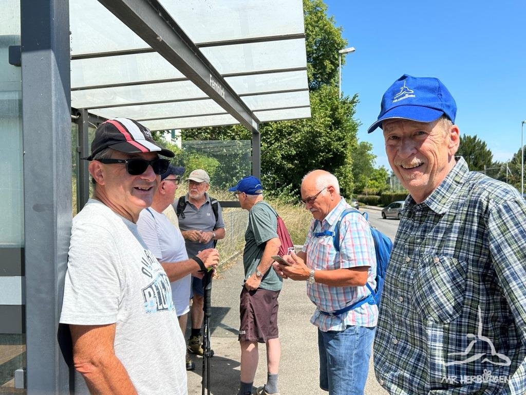 Bei sehr heissem Wetter wanderten acht Teilnehmer von Neuhausen Fernblick über den Galgenbuck - Hohfluh – Sternwarte – Griesbach - Säckelamtshüsli zur KSS.