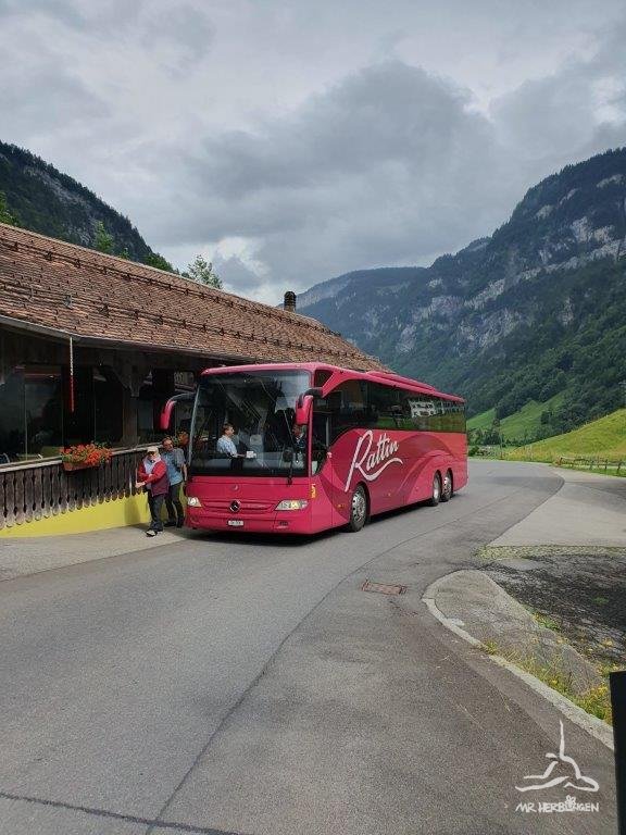 Nach einem währschaften Mittagessen mit feinem Dessert im Restaurant Schönboden, ging es mit der steilsten Standseilbahn (110% Steigung = 47.7 Grad) hinauf auf den Stoos, wo eine Besichtigung des Motorraums und der Kommandozentrale der Bahn anstand.